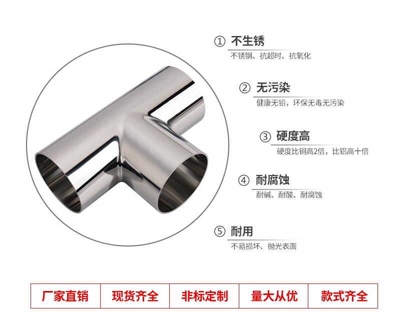 三通有等径和异径之分,等径三通的接管端部均为相同的尺寸;异径的三通的主管接管尺寸相同,而支管的接管尺寸小于主管的接管尺寸。